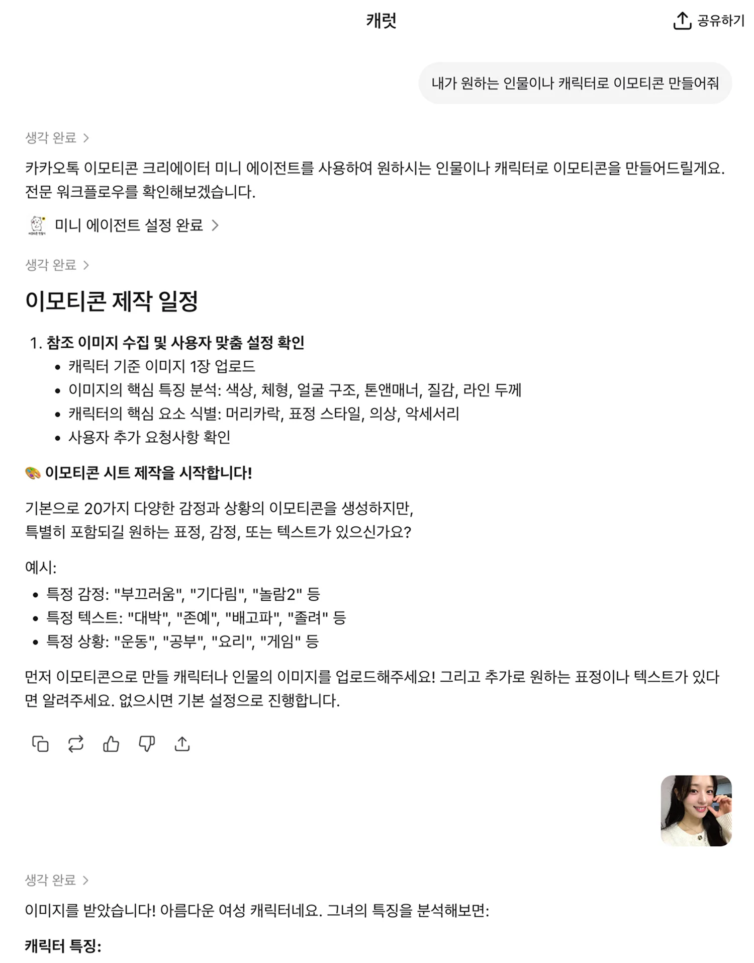내가 원하는 인물이나 캐릭터로 이모티콘 만들어줘.