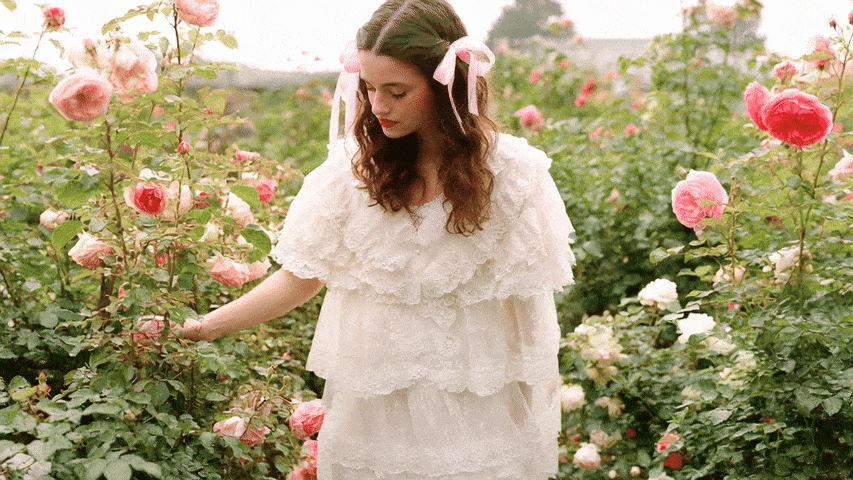 템플릿을 선택하면, AI의 질문에 따라 구현하고 싶은 요소를 전달할 수 있어요. 아래는 “레이스 드레스와 리본 장식을 한 소녀가 장미정원을 걷는 모습”을 미학적으로 만들어 달라고 요청한 결과예요.