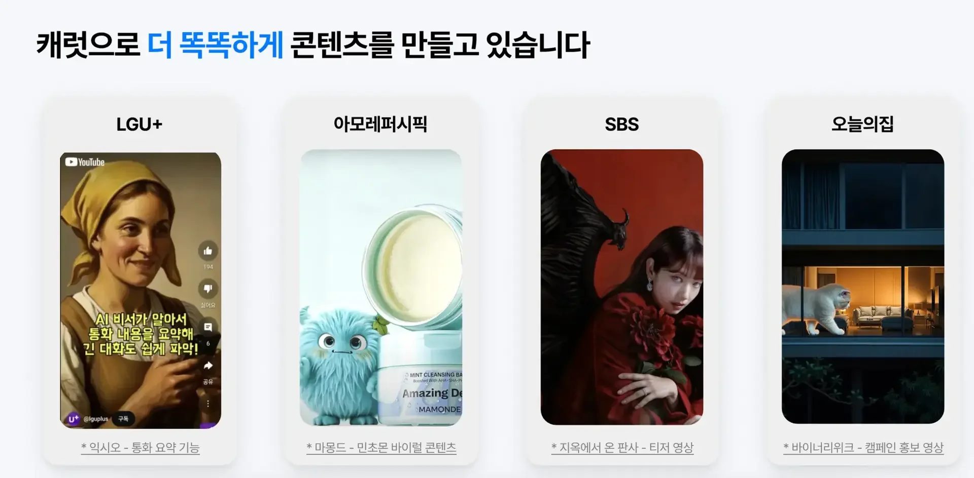 특히, LG유플러스는 캐럿 AI의 비즈니스 플랜 상품을 도입해서 광고 제작비를 95% 절감하고, 제작 기간을 크게 단축했습니다.