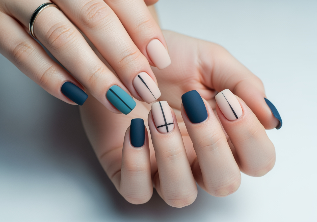 Generieren Sie moderne Nageldesigns mit klaren Linien und Volltonfarben.