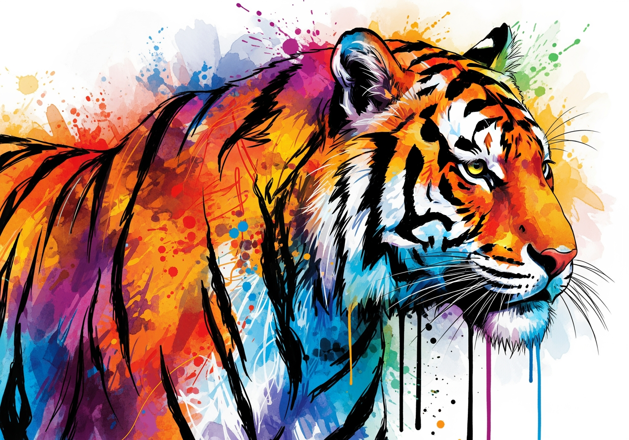 Generieren Sie einzigartige Tiger-Kunstwerke durch die Anwendung verschiedener künstlerischer Techniken wie Tuschmalerei, Ölmalerei und Pop-Art.
