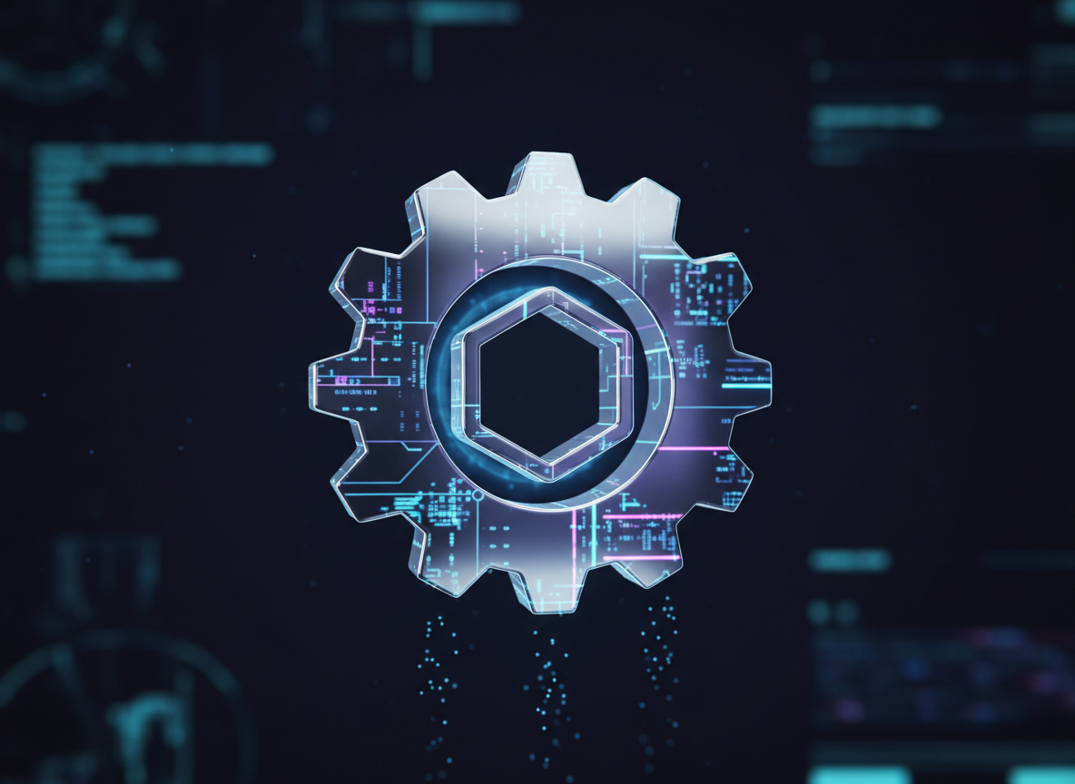 설정 또는 제어 기능을 상징하는 기계식 톱니바퀴 픽토그램.