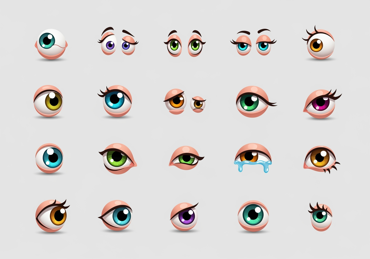 Los ojos de dibujos animados son el elemento más crucial para revelar la emoción y personalidad de un personaje. Se utilizan principalmente como recursos de diseño clave en el diseño de personajes, animación, webtoons, miniaturas de YouTube y creación de emoticonos, en cualquier lugar donde se necesite una narración visual.