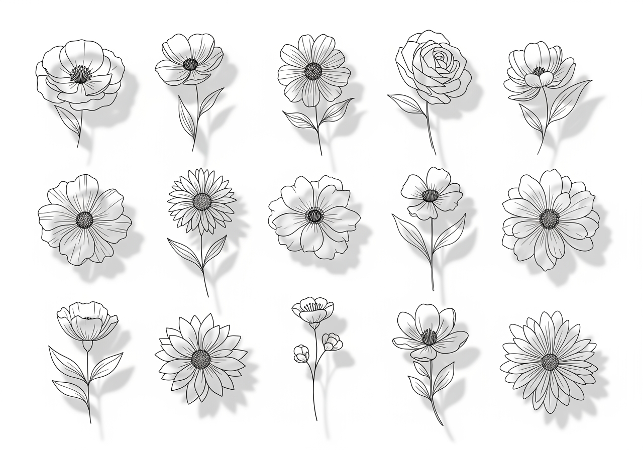 Carat AI crée sans effort des contours de fleurs dans n'importe quel style, des simples croquis aux illustrations botaniques précises, simplement en discutant.
