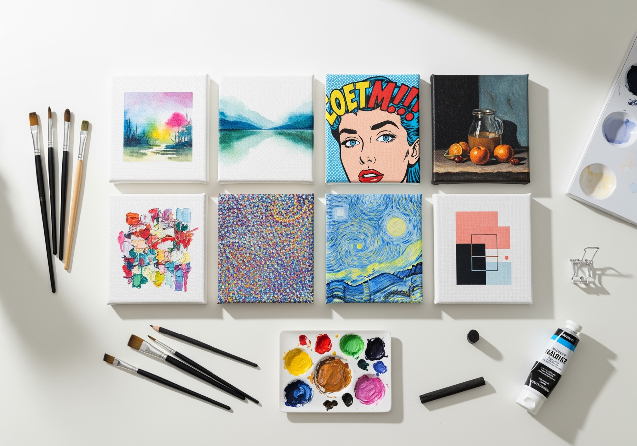 미니 캔버스는 보통 2인치에서 6인치 정도의 작은 크기의 캔버스를 말하며, 좁은 공간에 인테리어 소품으로 활용하거나 선물용 그림을 그릴 때 인기 있는 미술 재료입니다. 작고 귀여운 매력 때문에 취미 미술가들 사이에서 트렌드로 자리 잡았습니다.