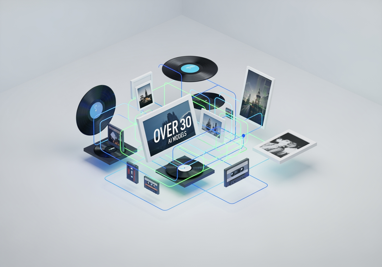 단순한 합성을 넘어, 배경 이미지를 생성하거나 오디오에 맞는 비디오 효과를 주는 등 30개 이상의 다양한 AI 모델을 한곳에서 활용할 수 있습니다.