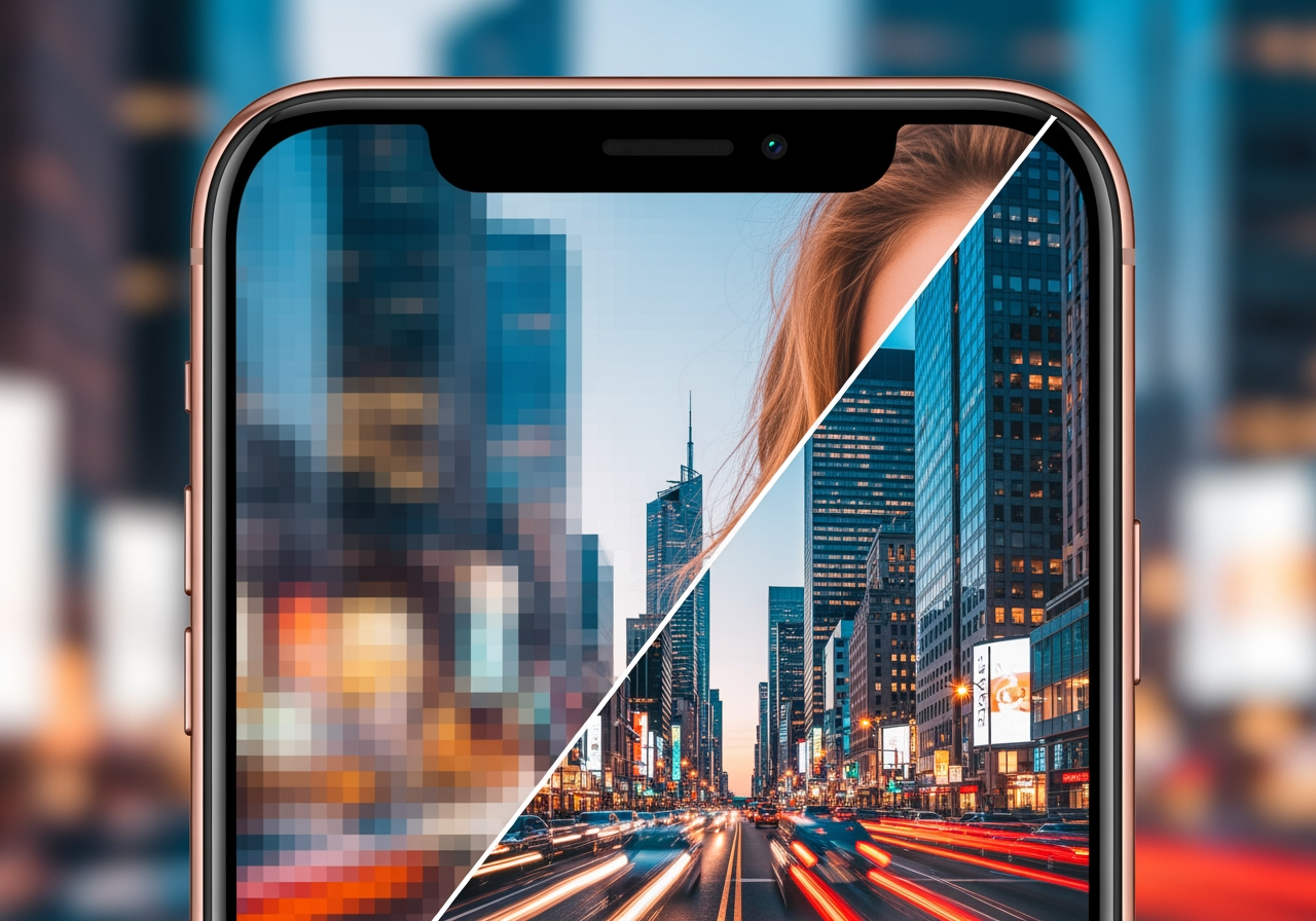 흐릿한 모바일 화면 녹화 영상을 4K 초고해상도로 변환하여 작은 텍스트까지 선명하게 만듭니다.