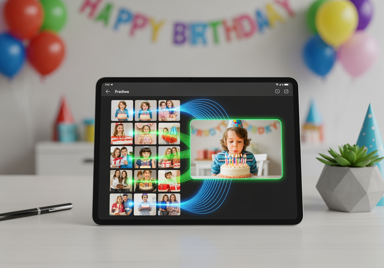 업로드한 사진으로 감동적인 생일 슬라이드쇼 영상을 자동으로 만드세요. 캐럿 AI는 30개 이상의 AI 모델을 활용하여 음악과 전환 효과가 포함된 고화질 영상을 생성합니다.