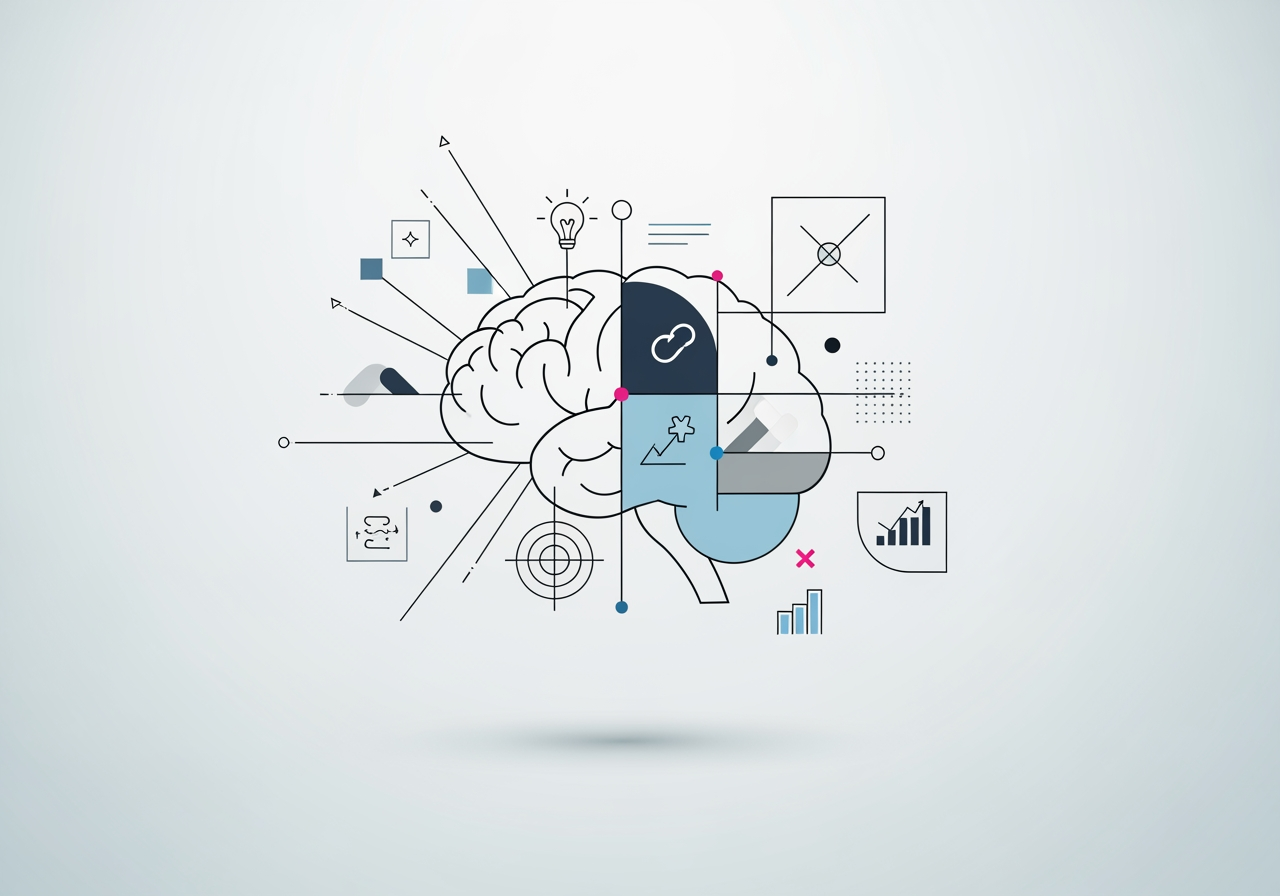 심리학, 자기계발, AI 기술 관련 블로그 포스팅이나 소셜 미디어 광고에 시선을 끄는 썸네일로 활용하세요.