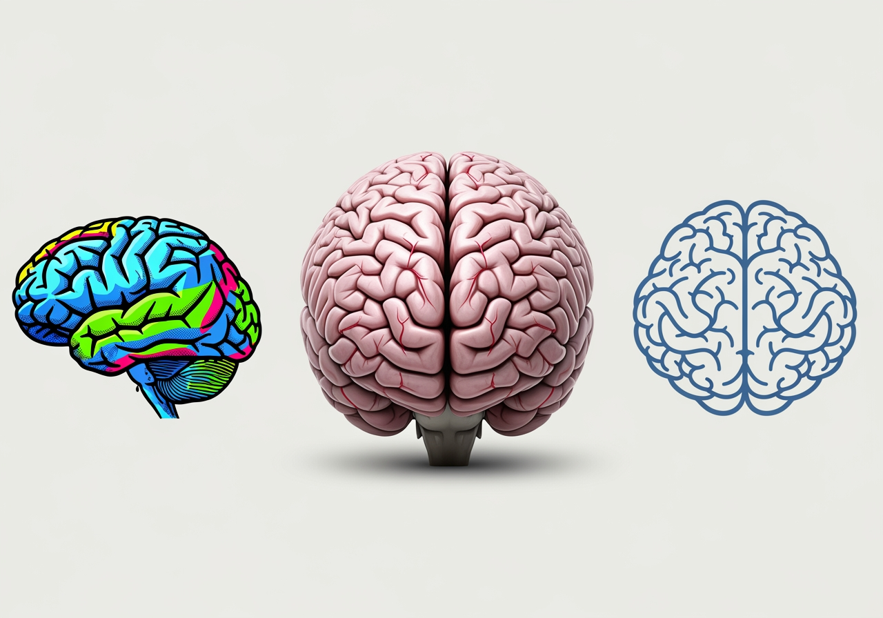 30개 이상의 다양한 AI 모델을 활용하여 과학적 정밀 묘사부터 팝아트 스타일까지 원하는 모든 형태의 뇌 이미지를 한곳에서 제작하세요.
