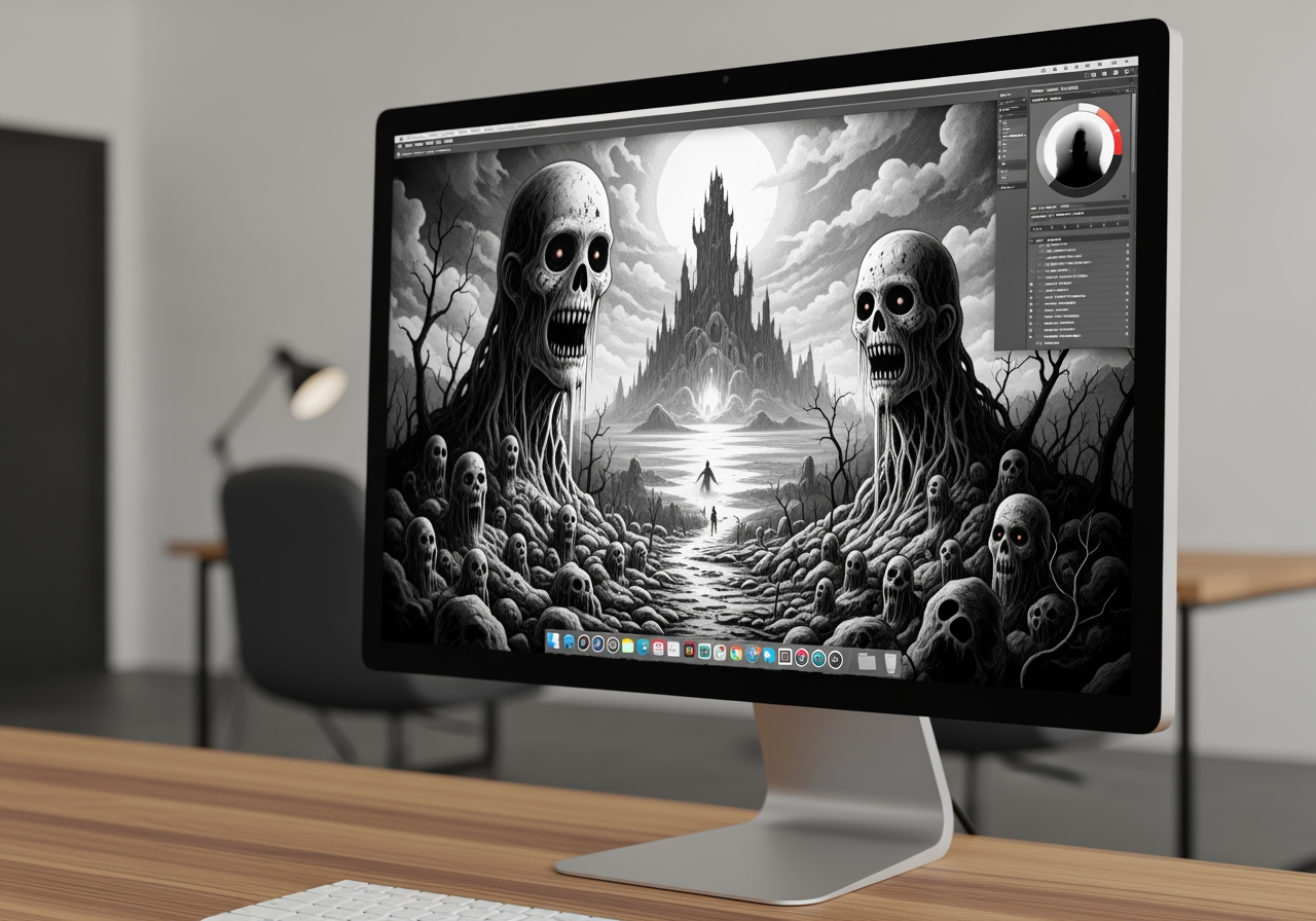생성된 오싹한 그림을 4K 해상도로 업스케일링하여 인쇄나 작품 활동에 즉시 활용하세요.