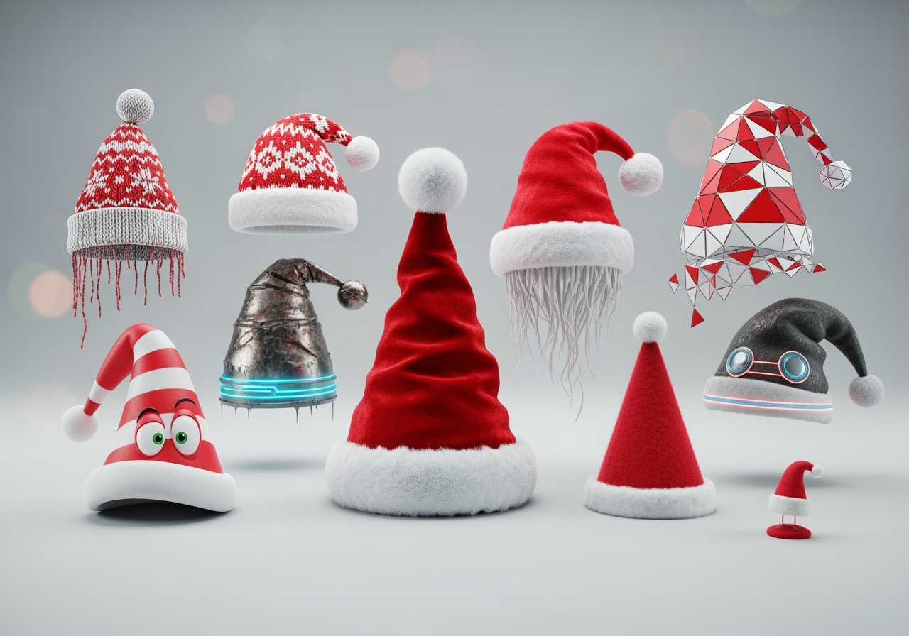 연말 파티나 세일 이벤트를 위한 홍보물에 시선을 사로잡는 고퀄리티 3D 산타 모자 그래픽을 적용하세요.