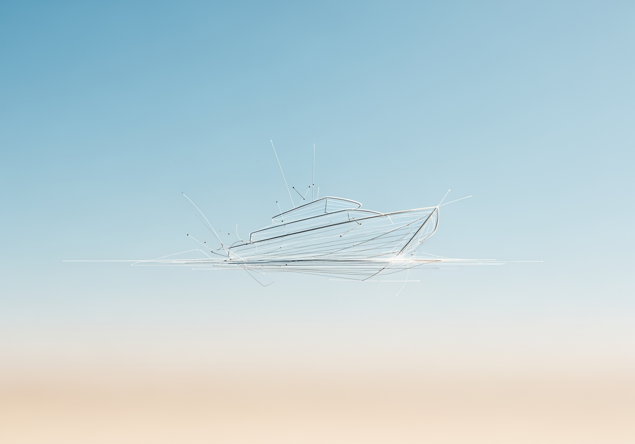 Immagine principale del Generatore di Disegni di Barche con IA: Una forma astratta di barca disegnata da linee AI.