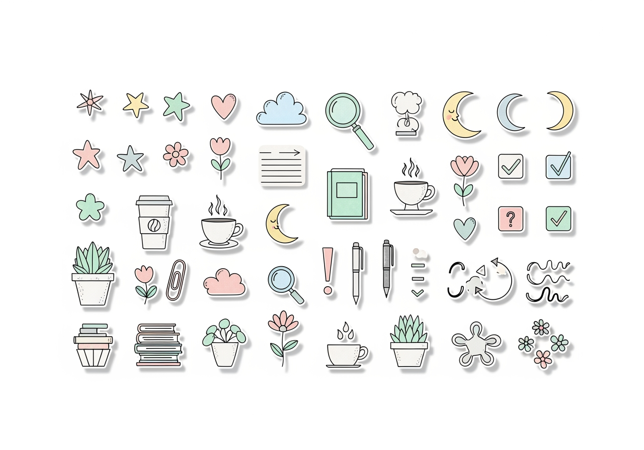 I Doodle Carini sono disegni affascinanti realizzati con linee e forme semplici. Sono comunemente usati per il bullet journaling, la presa di appunti digitale e la creazione di adesivi, caratterizzati dalla loro atmosfera semplice ma emotiva.