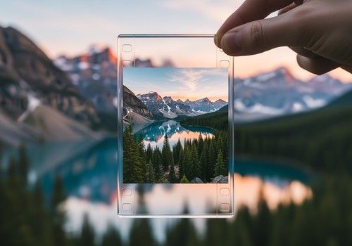 A clear film frame showing a perfect nature scene, symbolizing watermark-free AI video.