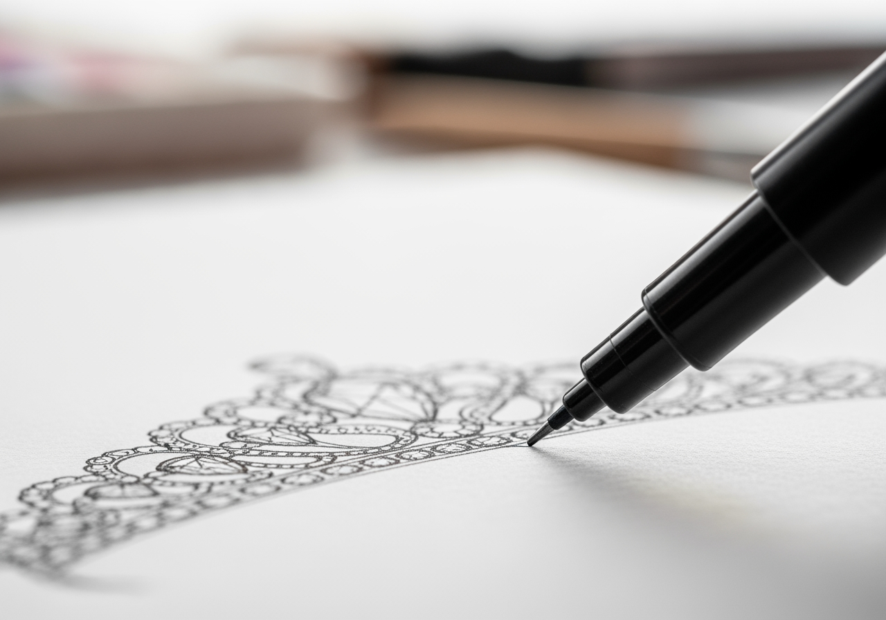 Close-up macro de uma caneta desenhando uma tiara de diamantes intrincada