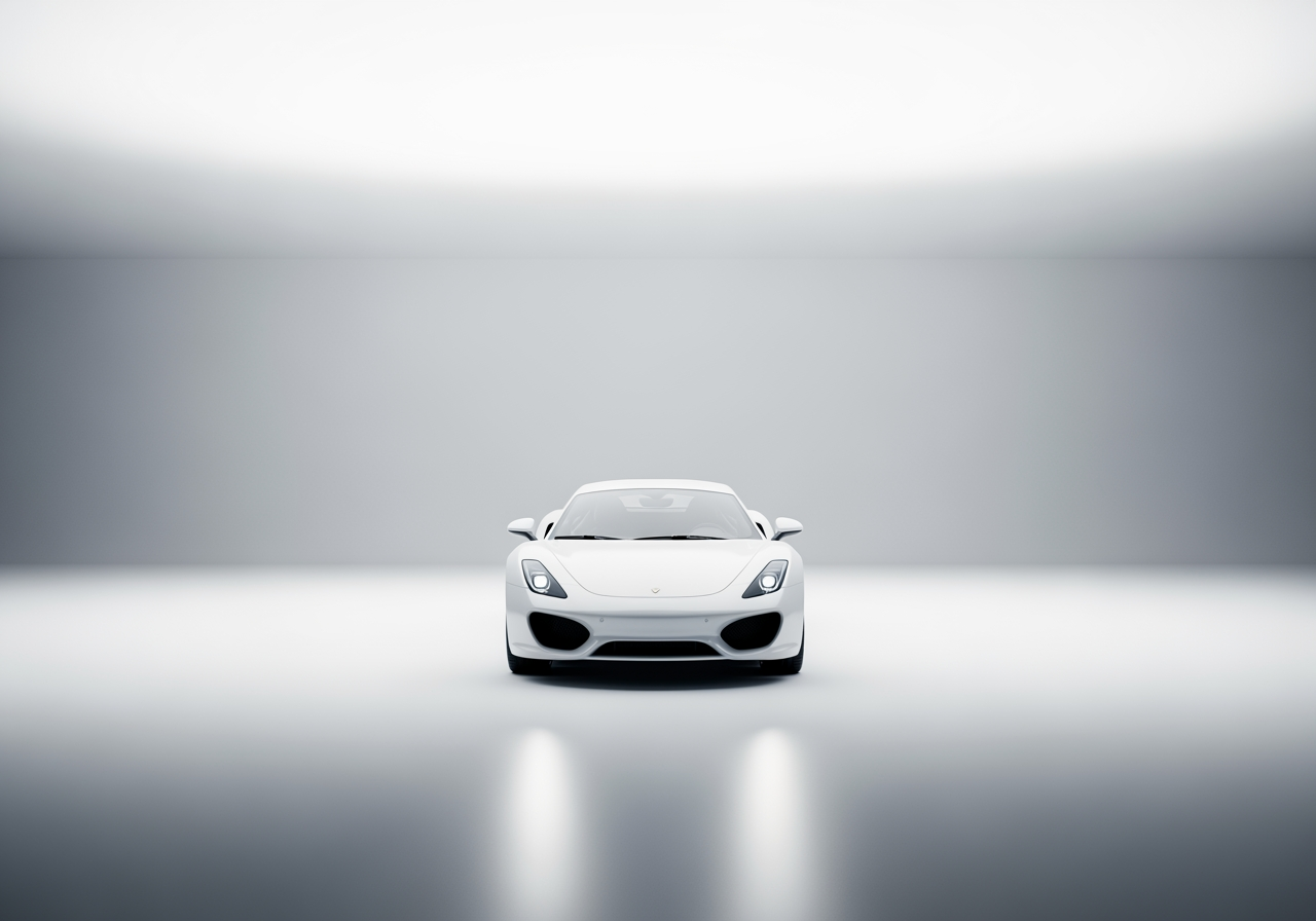 生成看起来像在摄影棚灯光下的干净白色车辆图像,用于广告草稿或网站横幅。